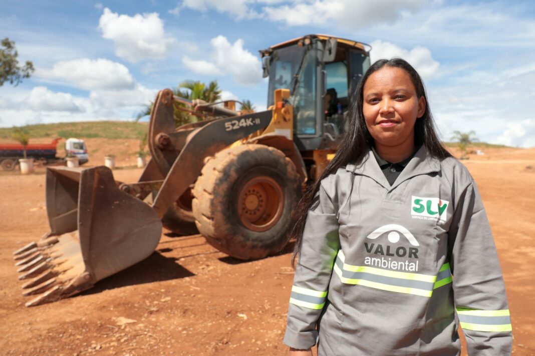 Lidiane do Nascimento trabalha na Unidade de Recebimento de Entulhos (URE) como operadora de máquinas pesadas. Seu percurso profissional é um exemplo de superação e crescimento. “Eu carrego caminhão, carrego pedras para jogar no britador; rejeito também”, conta. “Nunca conheci outra mulher que fizesse um trabalho como esse. Eu sinto muito orgulho”.