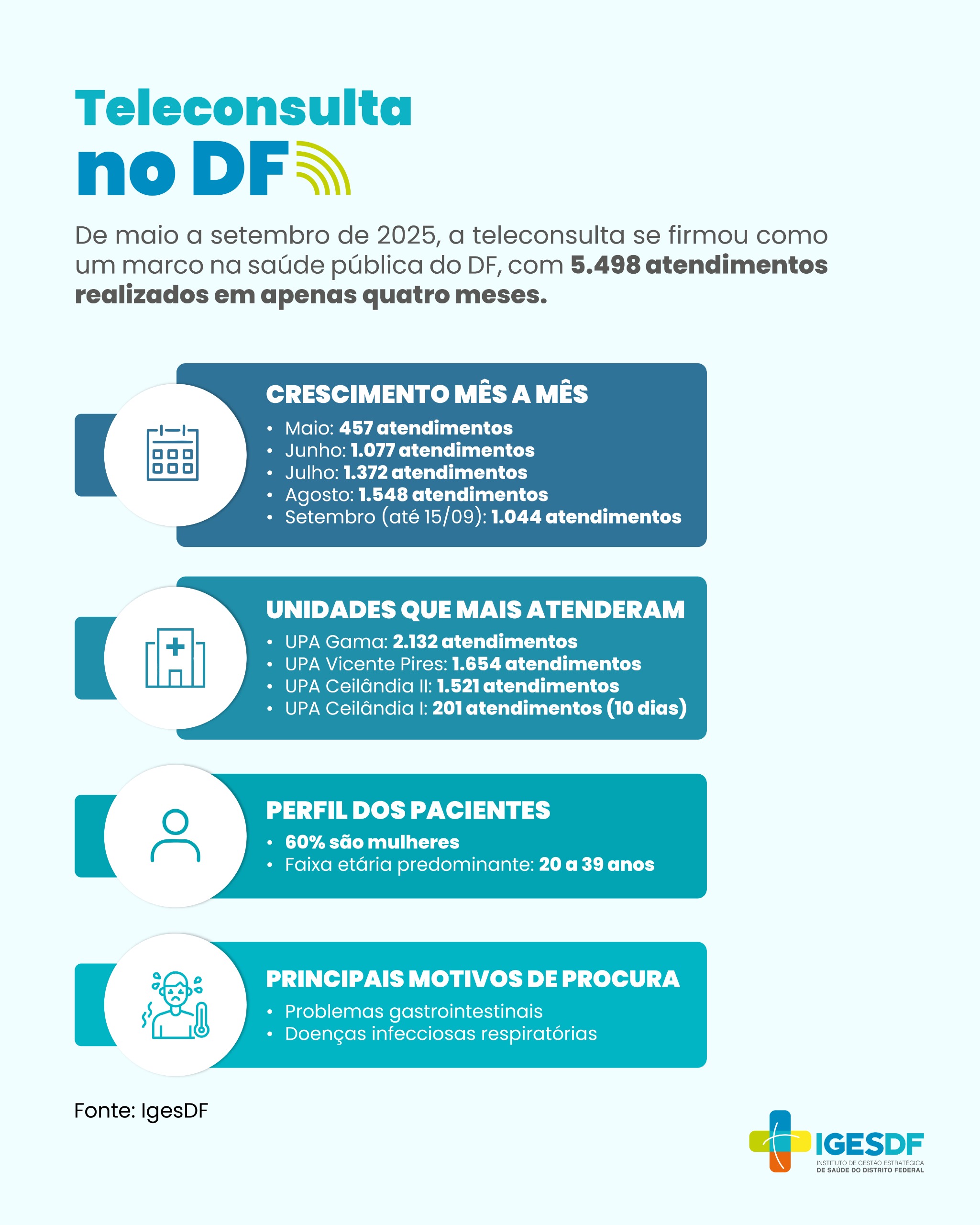 Desde maio de 2025, quando a UPA de Vicente Pires começou o teleatendimento, o serviço já foi expandido para outras quatro unidades, além de Samambaia: Gama e Ceilândia I e II. Juntas, já atenderam mais de 5,5 mil pessoas.
