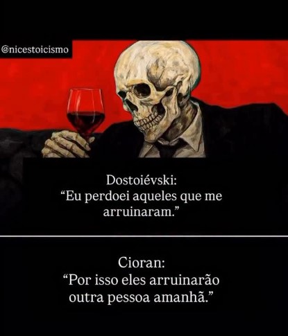 Dostoiévski disse: “Eu perdoei aqueles que me arruinaram.” Cioran respondeu: “Por isso eles arruinarão outra pessoa amanhã”.