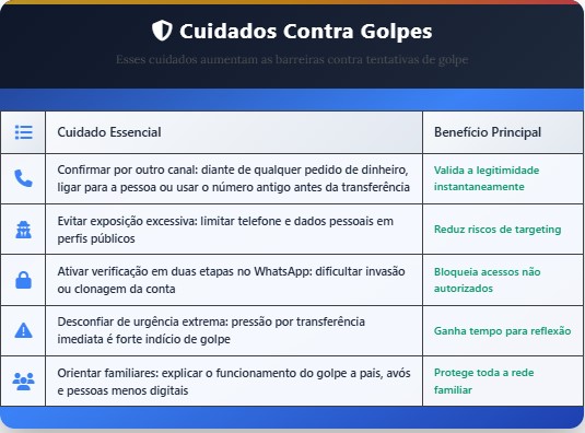 Quais cuidados práticos ajudam a prevenir o golpe do WhatsApp